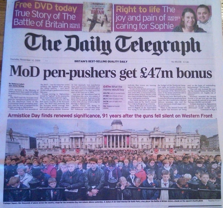 今朝のデイリーテレグラフ紙の一面を飾っておりました。